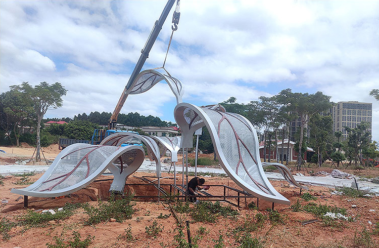 戶外園林不銹鋼雕塑除傳遞美,還需要考慮其耐用性,優(yōu)選304、316以上型材,在造型上也需要避免尖銳棱角以防意外,還需要考慮到其反射,以免對(duì)行人車輛造成視覺(jué)干擾。