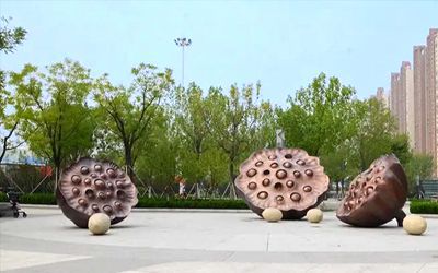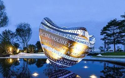 城市園林不銹鋼雕塑以景觀標(biāo)識(shí)為主,往往尺寸都比較大,可以作為一個(gè)地段、一條街、一棟樓、一個(gè)小區(qū)、一個(gè)園林,甚至一個(gè)城市的地標(biāo)。