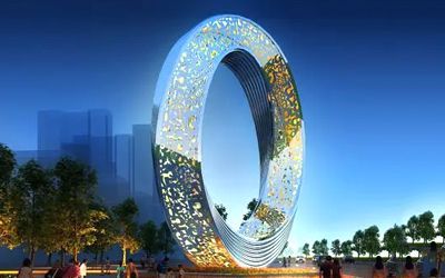 地產(chǎn)類不銹鋼雕塑以大氣磅礴為主要表現(xiàn)形式,一般都是抽象的,傳遞一種視覺(jué)上的震撼效果,常見(jiàn)如圓環(huán)、鏤空球、云朵、假山、浪花、水滴等等。