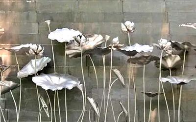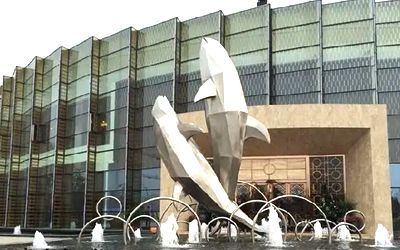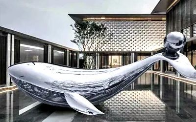酒店不銹鋼雕塑以美為主,一般為裝飾性美陳景觀雕塑,常見(jiàn)于酒店大門、大堂、園林。包括但不限于水景景觀類,如圓環(huán)、噴泉、鏤空球;裝飾美陳類,如蓮花、翅膀、鵝卵石、水滴等。